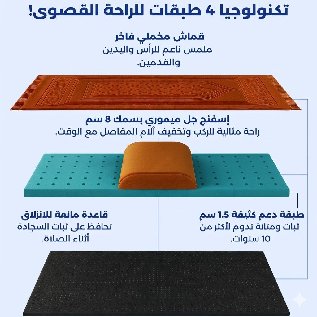 نعم، بالتأكيد. بفضل طبقة **الميموري فوم بسمك 8 سم**، تعمل السجادة على امتصاص الضغط وتوزيعه بالتساوي، مما يوفر راحة فورية للمفاصل والركبتين أثناء السجود.